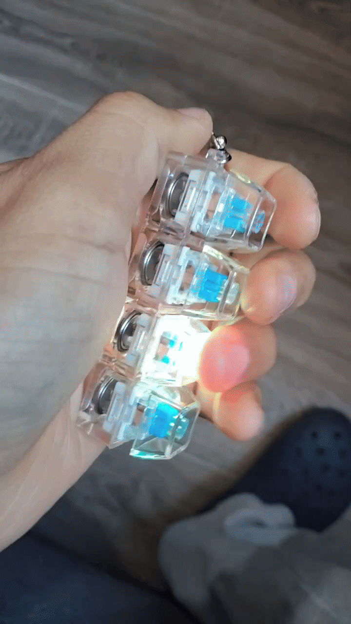 Hecho para mentes inquietas. Cada click suena increíble, se ilumina y te ayuda a soltar tensión, enfocar o simplemente desconectar un segundo. Perfecto para TDAH, ansiedad o esos momentos en los que necesitas resetearte sin decir una palabra.